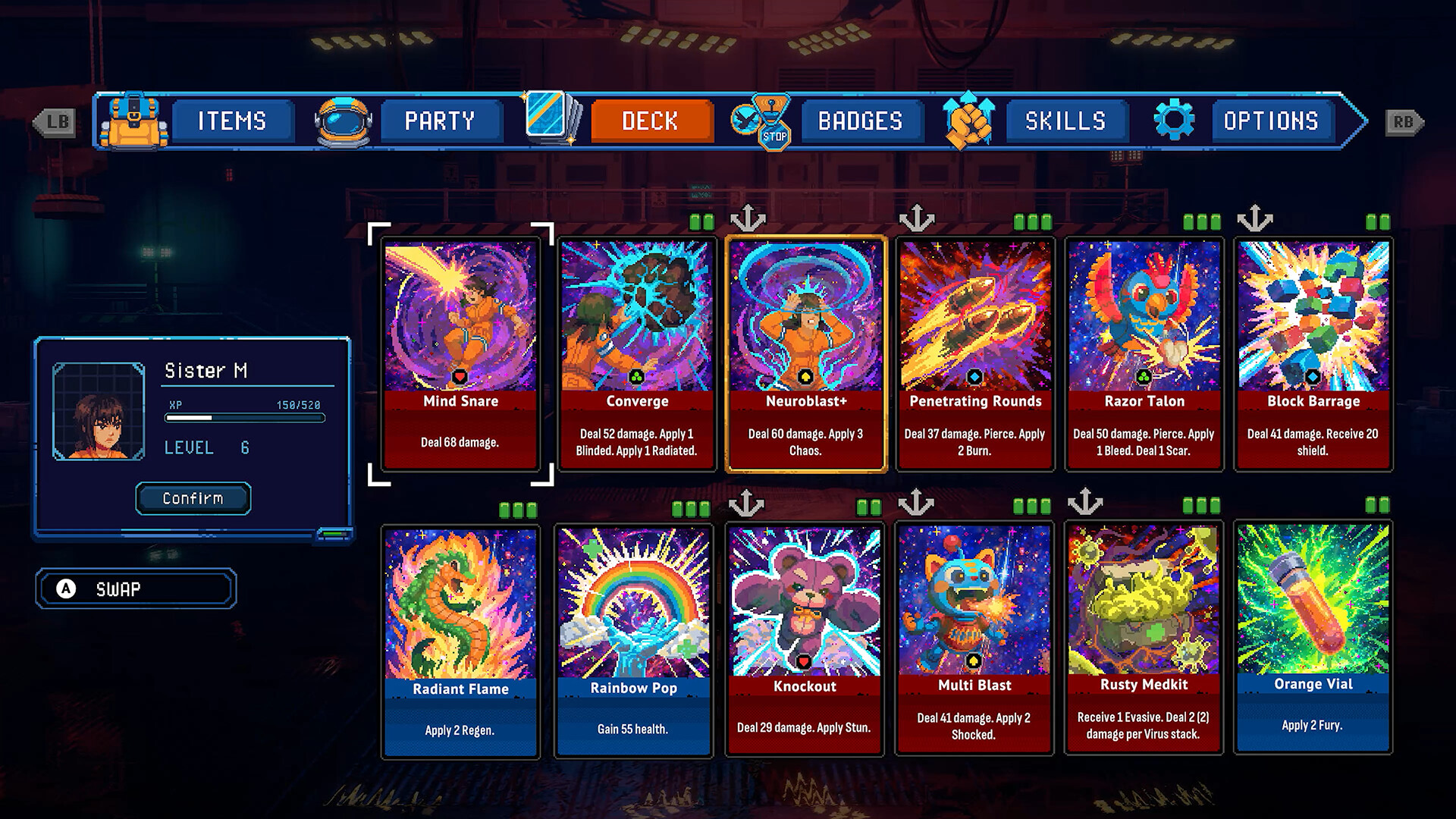 Build your party from six distinct characters, each with their own abilities, decks, and playstyles.