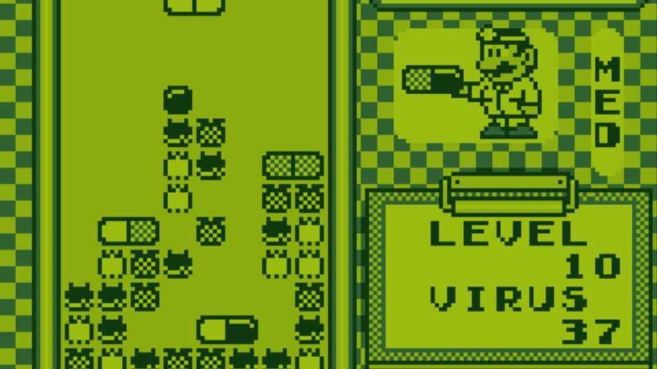 Dr. Mario is a falling block tile-matching video game, in which Mario assumes the role of a doctor, dropping two-colored medical capsules into a medicine bottle representing the playing field.