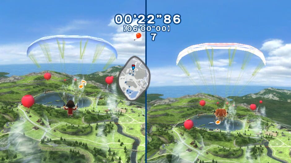 In Go Vacation players explore four paradise resorts hosted on Kawawii Island: Marine, City, Mountain, and Snow. Over 50 activities are available on the island including bungee jumping, ice fishing, scuba diving, miniature golf, tennis, off-road racing, and snowman building. In the bungee jumping mini-game, players are challenged by needing to brake as close to the ground as possible. The island can be explored at leisure and navigated by walking, rollerblading, or riding on an ATV.