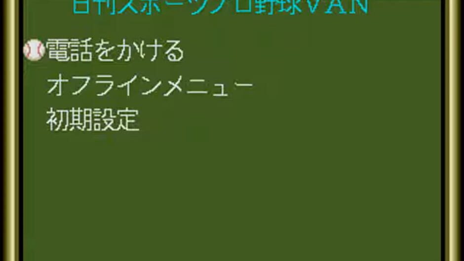 Nikkan Sports Pro Yakyuu VAN is a Sega Mega Drive cartridge developed and released by Sega exclusively in Japan. It uses the Sega Mega Modem and a subscription VAN service to display game action in real time, and to save games for later viewing. As such, it cannot be properly emulated yet. Nikkan Sports provided the service under the VAN name.