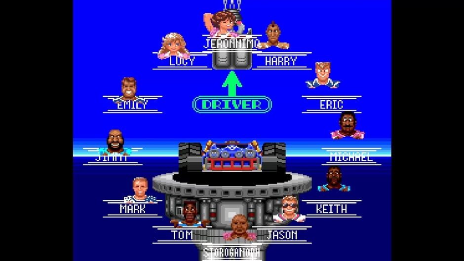 There are 5 tracks to choose from, each with 5 stages. The stages range from cities, to deserts to tracks over water. There are also 12 drivers to pick from, from businessmen to skinheads and mohicans.